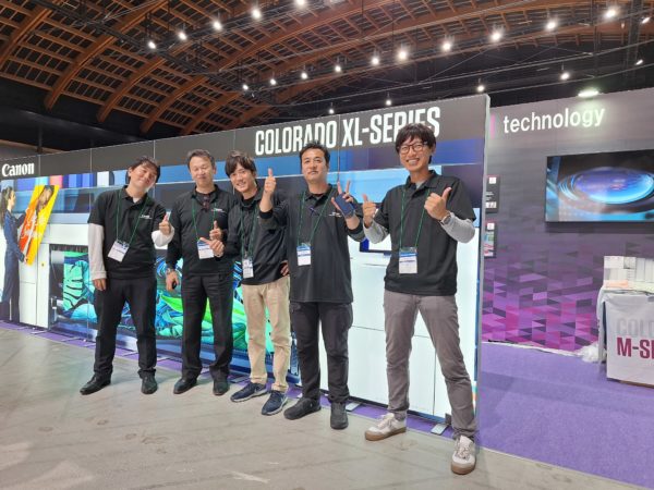 Daisuke Ishibashi and his team have put in their best effort to showcase the XL-series in real size, beautifully printed on SEG panels using the new Backlit High Density mode on several popular backlit textiles in the Japanese LFG printing market, media that is sure to become “food” for the Colorado XL-series once it lands in Canon’s hometown.