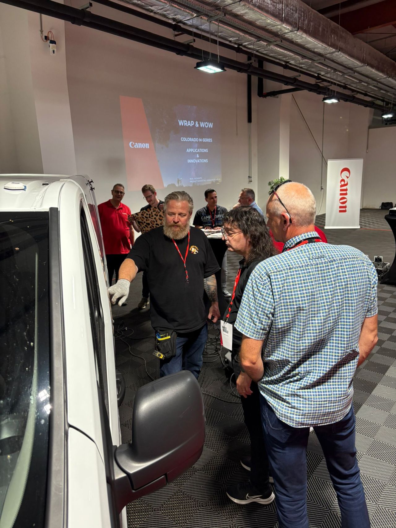 Throughout the day, participants saw firsthand how UVgel accelerated production workflows, enhanced print quality, and delivered greater sustainability and cost-efficiency. Canon experts conducted live demonstrations, shared insights, and showcased the full potential of UVgel – from vehicle customization to seamless integration into existing processes.