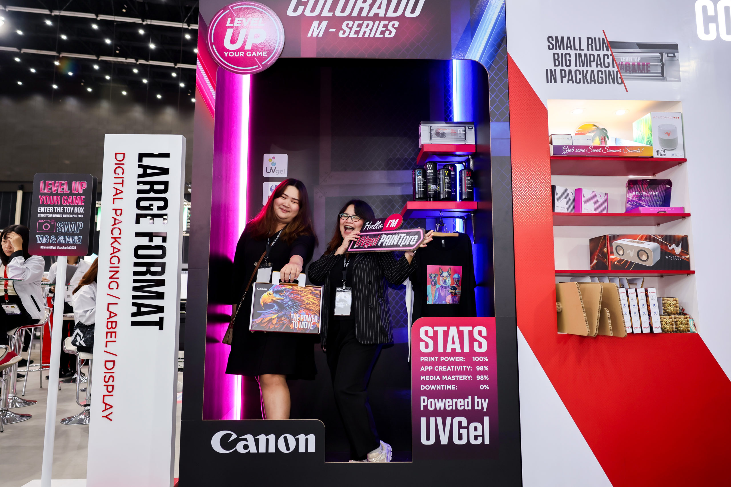 Throughout the event, Canon experts were on hand to guide attendees through the latest solutions designed to drive business success. Whether it was packaging, commercial print, or technical applications, the booth offered a hands-on experience that inspired new ideas and possibilities.